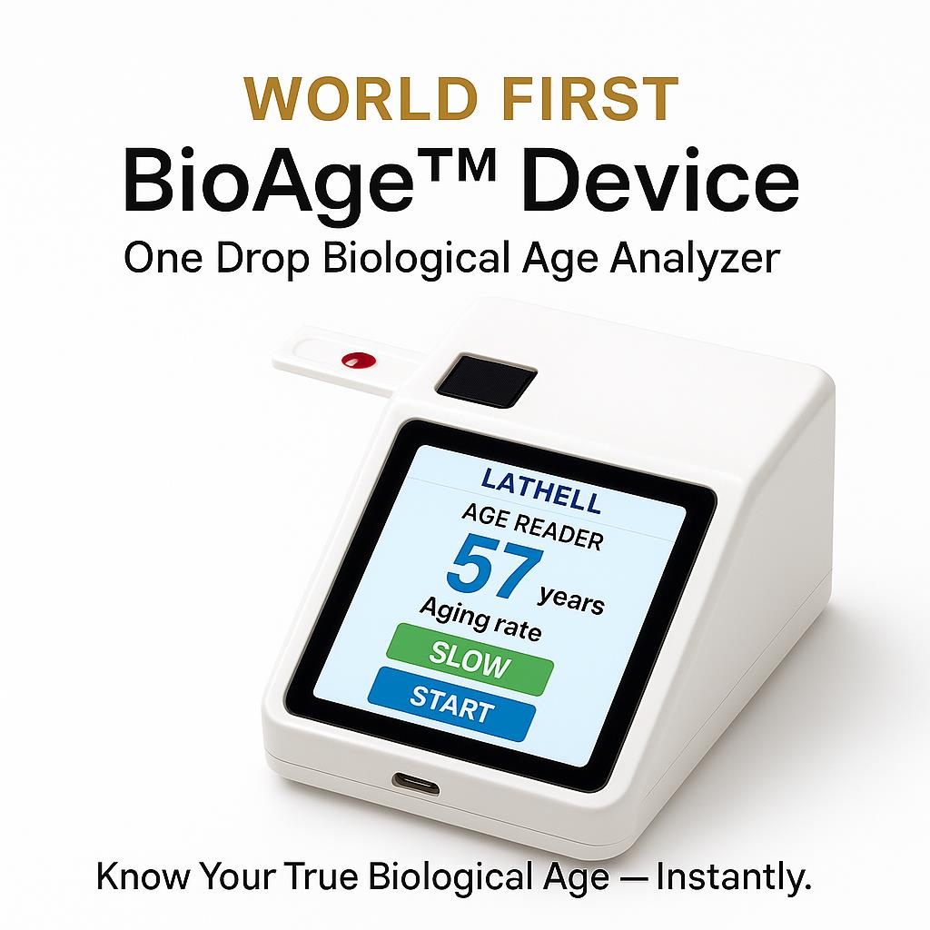 The BioAge™ Device is the world’s first one-drop blood analyzer that measures your true biological age in just minutes.