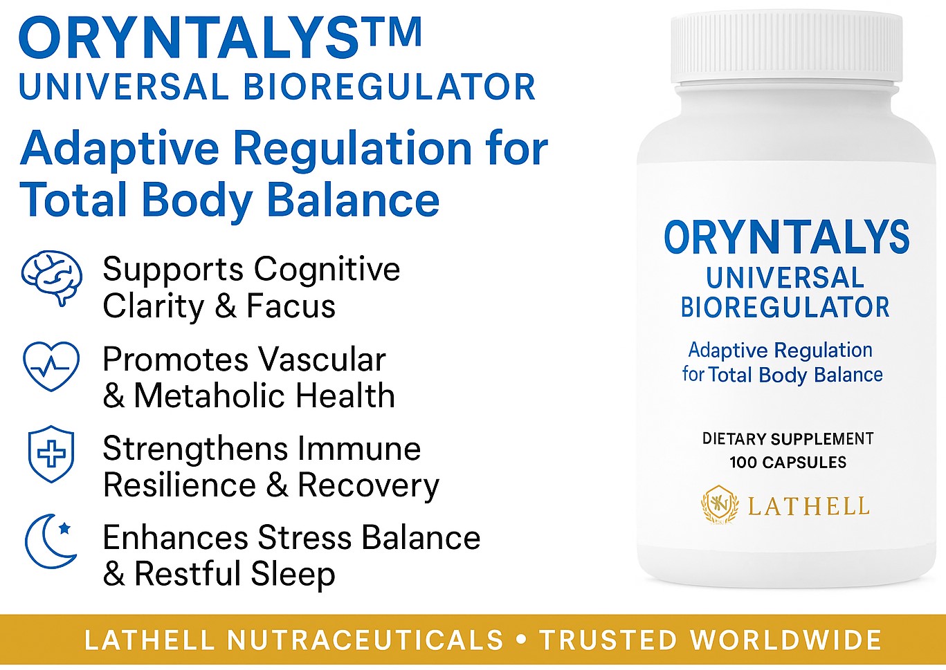 Oryntalys™ Universal Bioregulator is a breakthrough nutraceutical designed to restore balance, optimize health, and strengthen the body’s natural resilience across all populations. Developed with advanced natural compounds, it supports the body at a cellular level, helping regulate vital functions and promote long-term wellness.