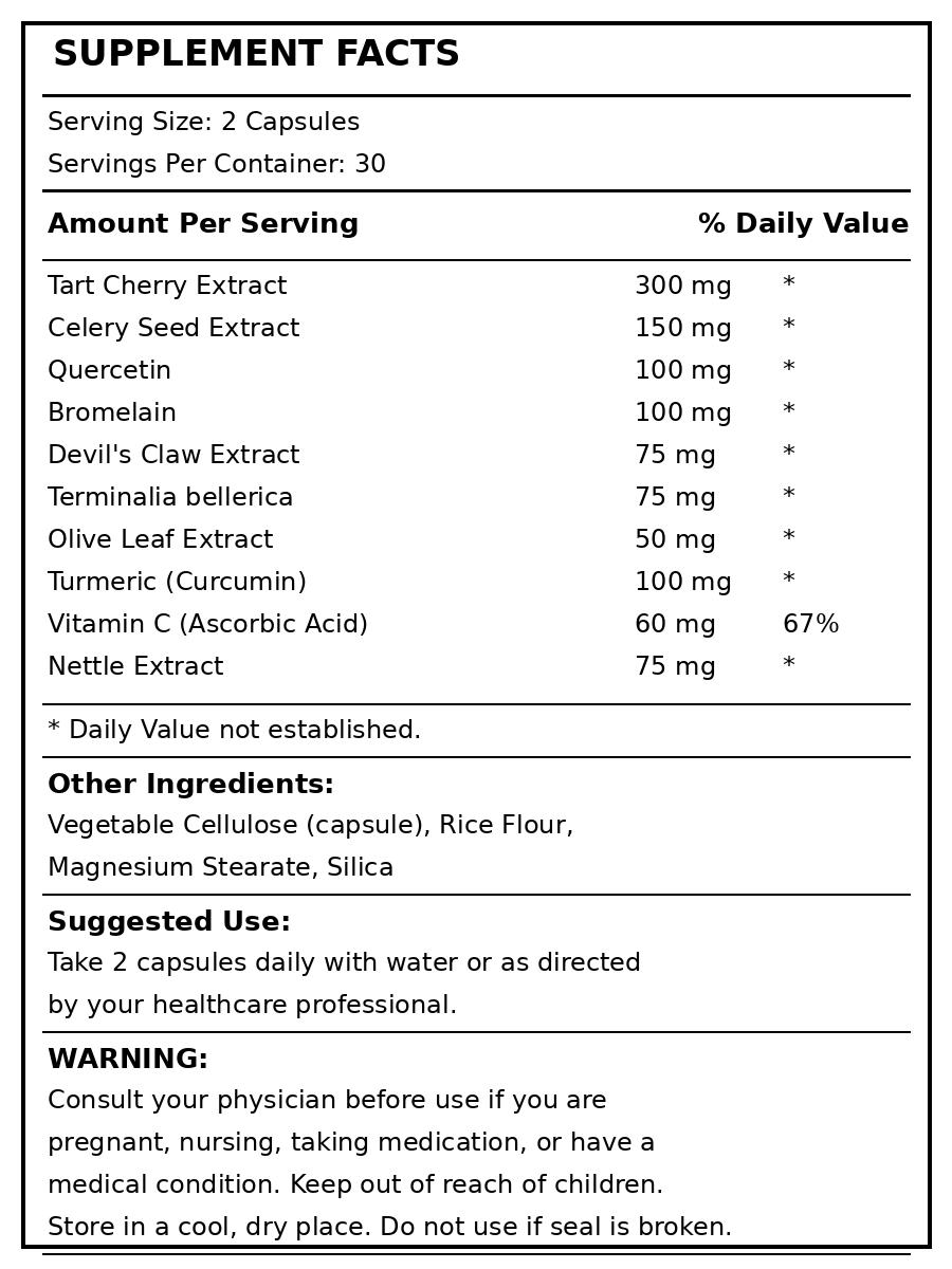 * **Clinically-Researched Ingredients** - Our proprietary blend includes tart cherry extract, celery seed, quercetin, and other powerful botanicals traditionally used to support healthy uric acid metabolism